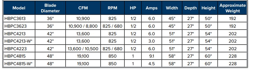 HBPC3613, HBPC3623, HBPC4213, HBPC4213-230-1PH, HBPC4223, HBPC4815, HBPC4815-230-1PH, HBPC4815-230-3PH